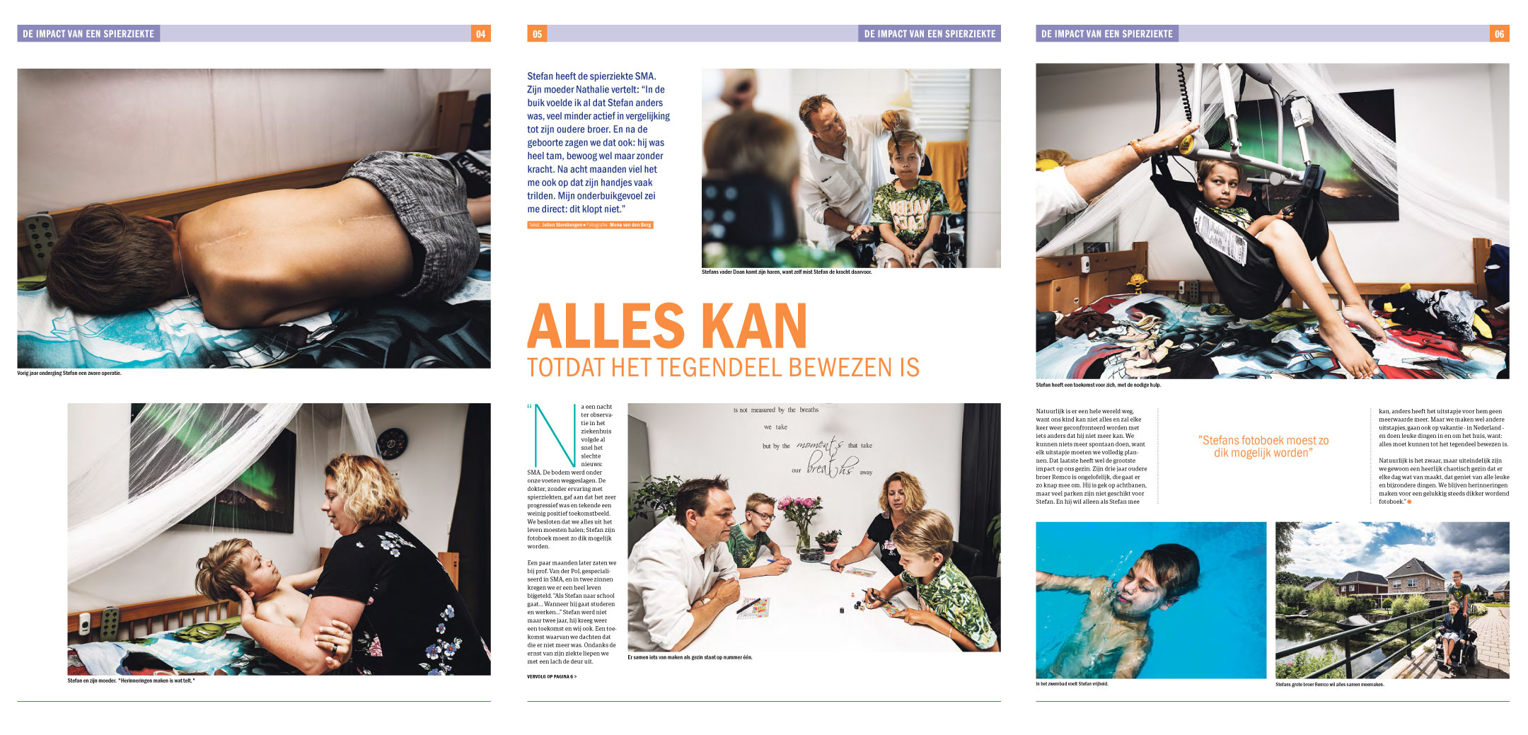 Stefan heeft de spierziekte SMA. Zijn moeder Nathalie vertelt: “In de buik voelde ik al dat Stefan anders was, veel minder actief in vergelijking tot zijn oudere broer. En na de geboorte zagen we dat ook: hij was heel tam, bewoog wel maar zonder kracht. Na acht maanden viel het me ook op dat zijn handjes vaak trilden. Mijn onderbuikgevoel zei me direct: dit klopt niet.”